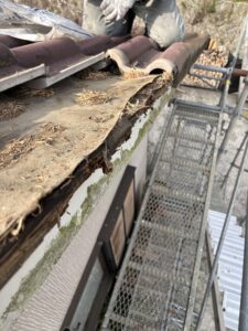 徳島 はふ瓦の下、腐り野地修理、ふき直し