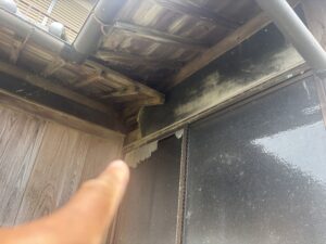 それらが谷の雨水の流れを堰き止め、内側(瓦の下)へ