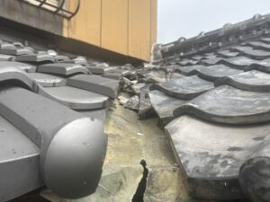 よく見ると谷のトタンの上に瓦クズや漆喰の剥がれが